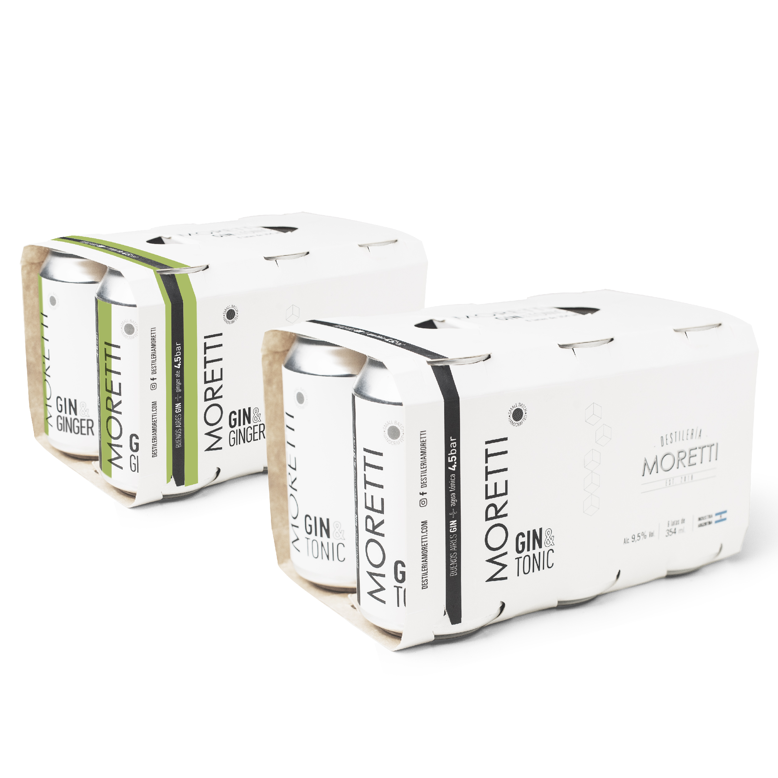 Este Pack contiene 12 latas de 354 ml: 6 de Moretti Gin&Tonic + 6 de Moretti Gin&Ginger La conjugación perfecta entre Buenos Aires Gin y 4.5BAR (Agua Tónica y Ginger Ale), dos productos craft pensados el uno para el otro.